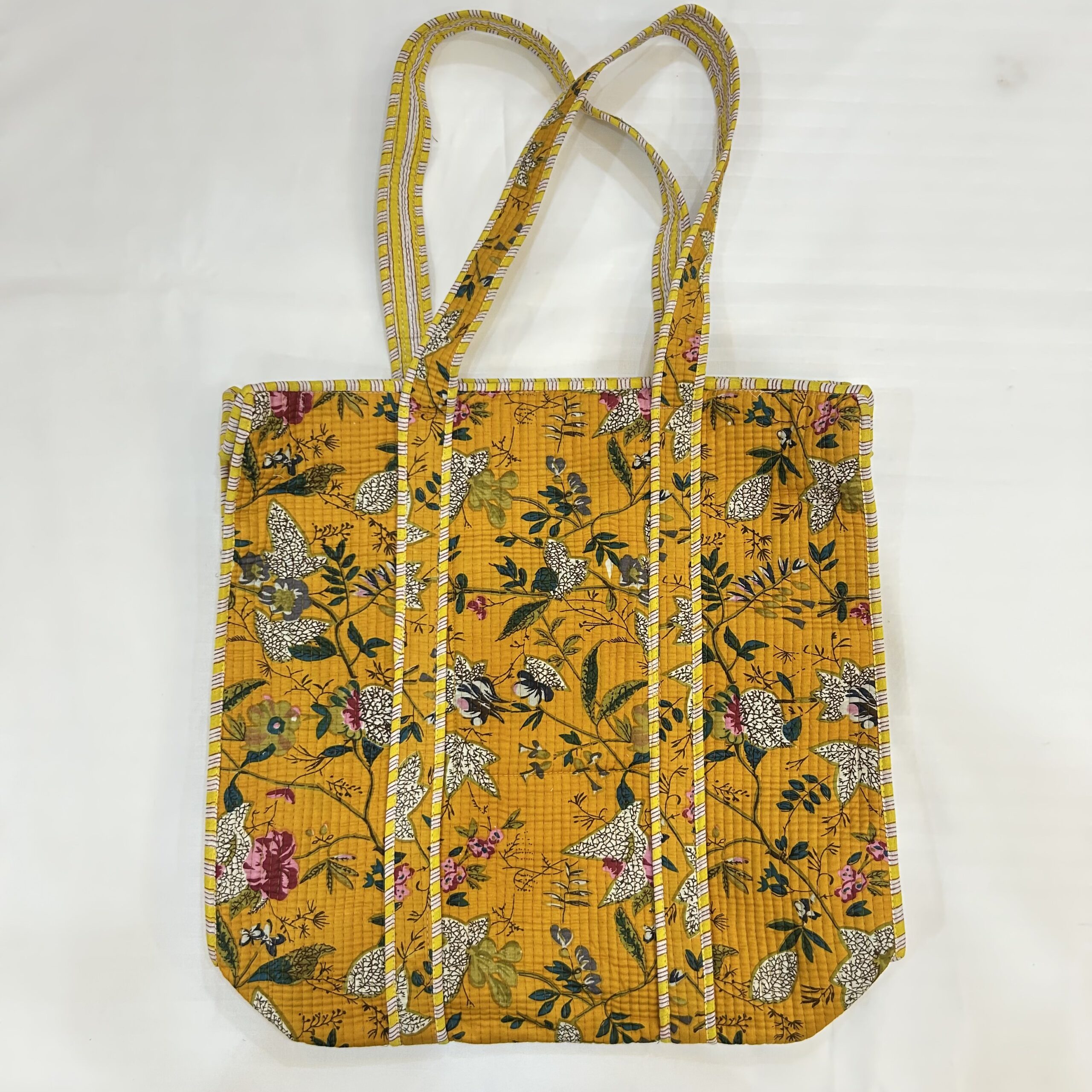 Jaipuri Handmade Floral Print Quilted Shopping Shoulder Bag, Tote Bag, Pure Cotton Quilt.
