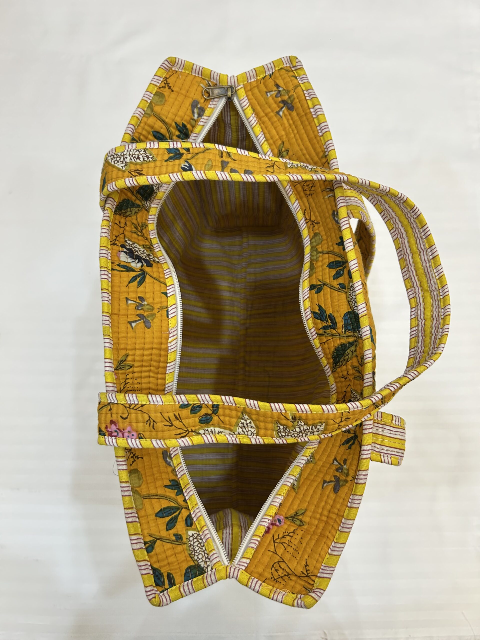 Jaipuri Handmade Floral Print Quilted Shopping Shoulder Bag, Tote Bag, Pure Cotton Quilt, with Zipper Closer.