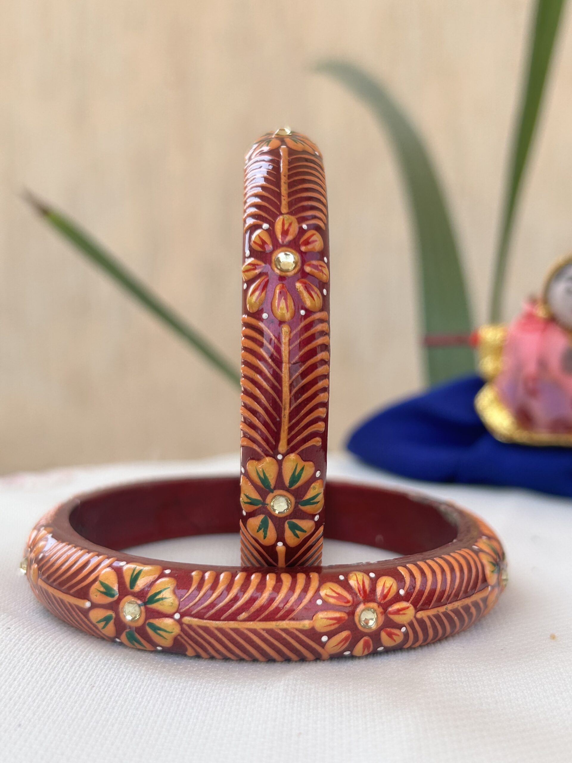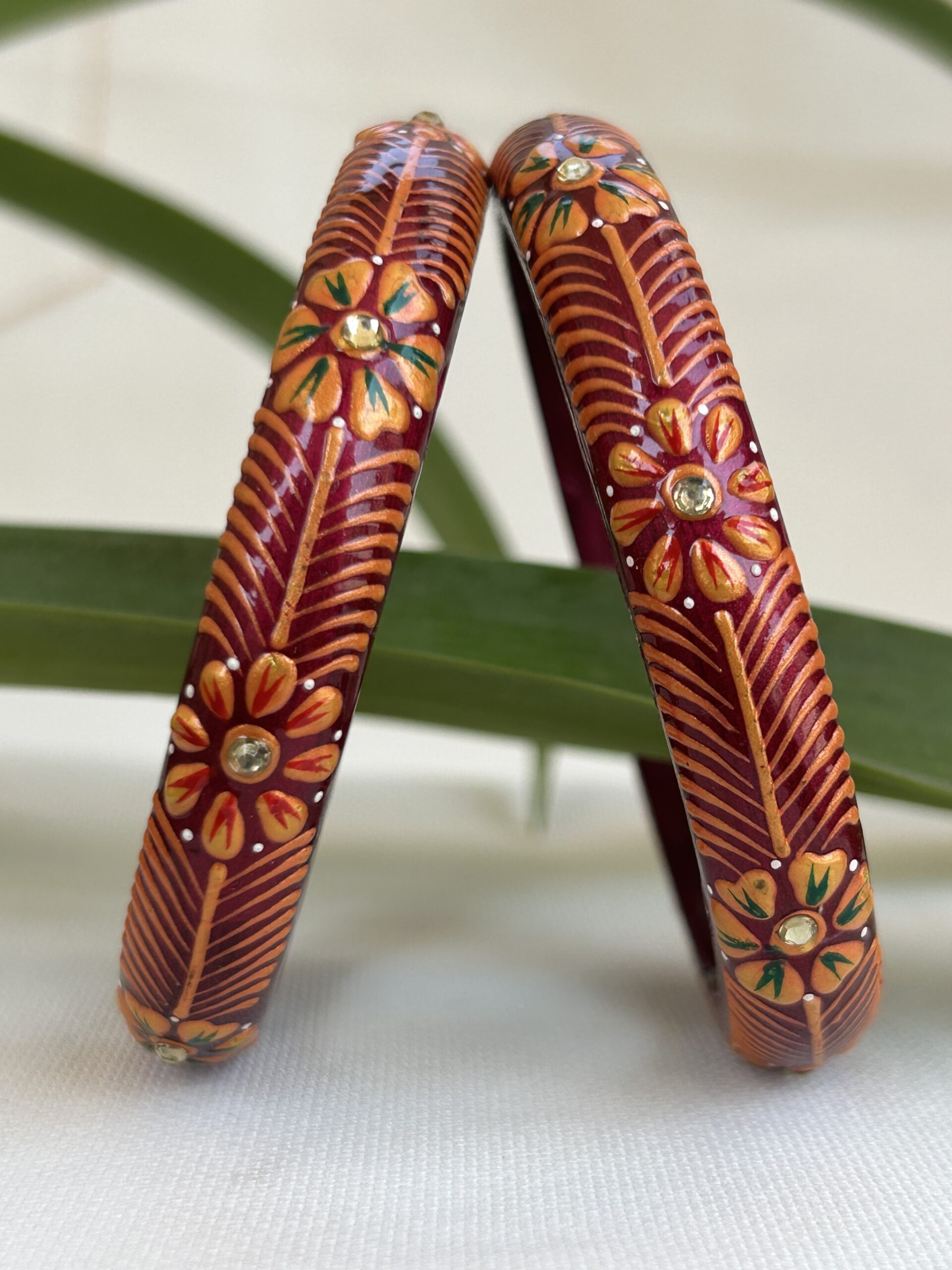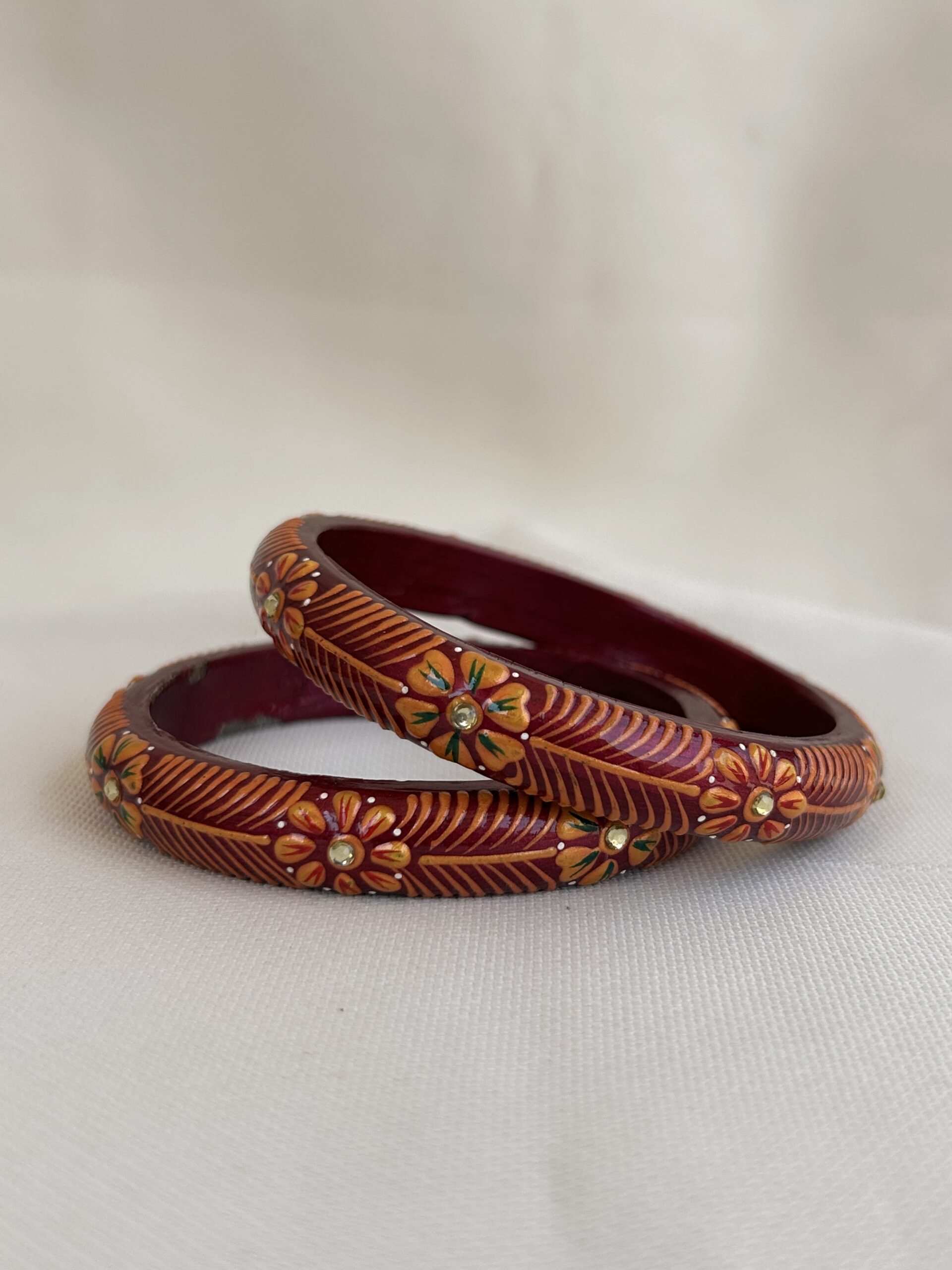 Jaipuri Handmade, Hand-painted Lac Bangles with Intricate Floral Designs, Golden Detailing, and Stone Accents—Perfect for Festive Wear or thoughtful ethnic gifting.